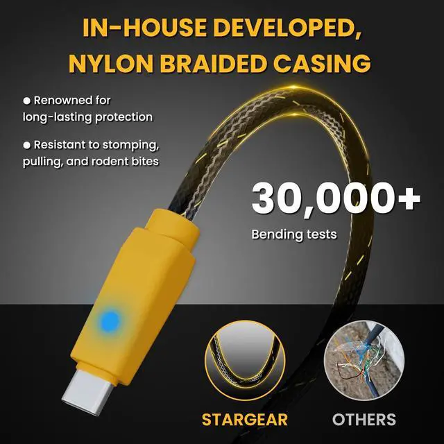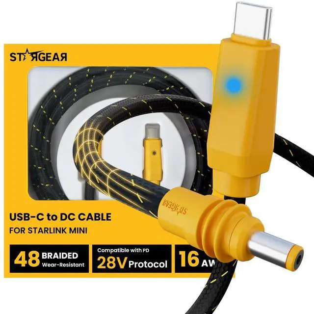 Starlink Mini: Engineered for demanding outdoor use, this starlink mini usb c cable combines reinforced braiding with a 30000+ cycle bend-tested core. Starlink Mini is IP67 Type 4 with this DC plug and Starlink Plug/Cable installed. Tested for continuous reliability, it's built to minimize field failures during adventures ^^ Premium 16AWG