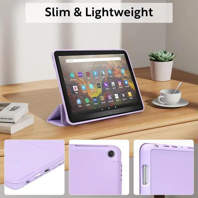 Compatibility FeatureSpecifically designed for All-New Fire HD 10 Tablet ( 10.1" 13th Generation, 2023 Release), Fire tablet 10 case will not fit for any other Kindle or Fire devices, please check your tablet model before ordering. ^^ Full ProtectionSlim lightweight durable protective hardback with premium quality PU leather. The soft and scratch-free ultra-fine interior of kindle fire hd 10 case, adds comfort and an additional layer of protection, to assist with drop protection and heat dissipation. ^^ Adjustable AngleThe special tri-fold front cover has a flipping function, which can transform the case into a Approximately 60 viewing stand and 30 typing stand.