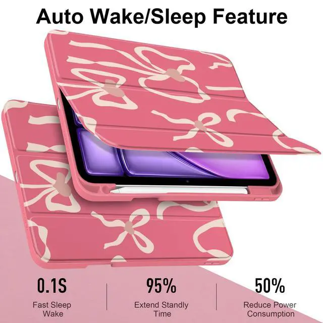 Generation(2022/2020) Characteristic: 1. The case is made of premium PU exterior, microfiber lining and clear acrylic back cover 2. Case automatically wakes your tablet when opened and puts it to sleep when closed 3. You can easily fold the cover into different positions to create a stand for reading, viewing, typing, or making FaceTime calls 4. Built-in pencil holder, grab your tablet pencil effortlessly whenever you want, easily carry your tablet pencil with your device 5. Easy to Installation and remove 6. Convenient to use all the controls and features
