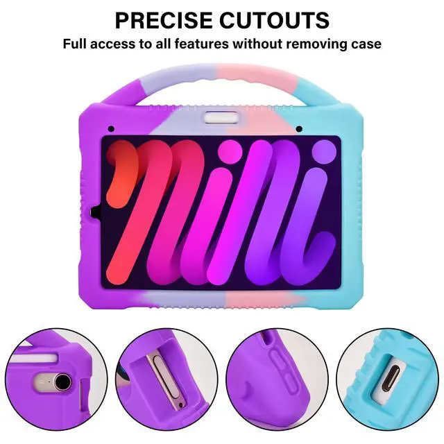 Built-in Kickstand Handle: Our ipad mini 6 case come with non-slip handle and built in foldable kickstand, it makes your tablet with multi-angle watching, convenient for typing or watching movies, and super lightweight handle to make tablet easy carry around by children ^^