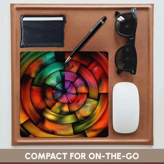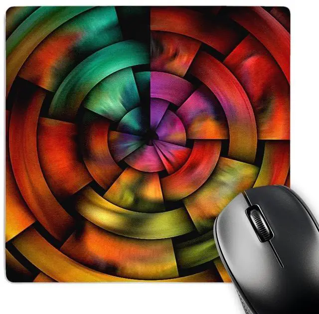 Digital Artwork Design Mouse Pad is 8" x 8" x. 25" and is made of heavy-duty recycled rubber. Matte finish image will not fade or peel. Machine washable using a mild detergent and air dry.