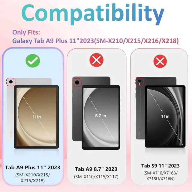 [COMPATIBLE] Only designed for Samsung Galaxy Tab A9+/A9 Plus 11 inch 2023 Release (SM-X210/SM-X216/SM-X218). DO NOT fit other Tablet