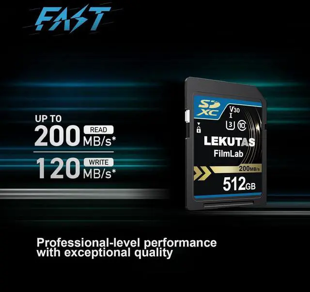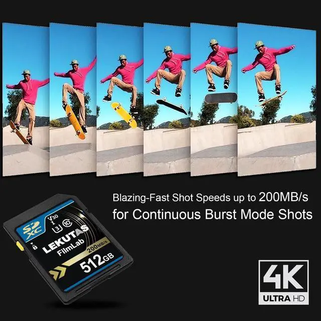 Non-Stop Shooting and Transfers in a Blink Read speed up to 200MB/s and write speed up to 130MB/s. Spend less time transfering means more time creating. You will NEVER miss a shot. ^^ Perfect for Shooting 4K UHD Video Features U3 and V30 ratings with A2 performance that helps with fast loading and 4K UHD video capture and sequential burst mode photography. (Full HD (1920x1080) and 4K UHD (3840 x 2160) video support vary based upon host device. ^^ Adapts To Wide Range of Needs Whether using DSLR, Mirrorless Camera or PC, count on the LEKUTAS SDXC card for extensive compatibility.