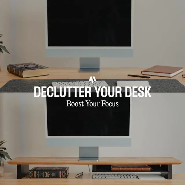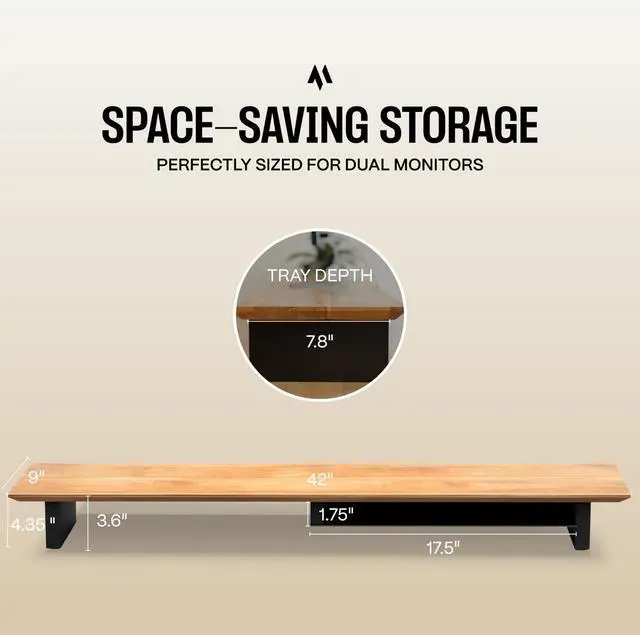 DESIGNED FOR DUAL MONITORS: At 42 x 9 x 4.3 in, it fits two screens comfortably while creating extra space below. Store your keyboard, notebook, and more. The wool-felt metal tray keeps smaller essentials within reach. ^^