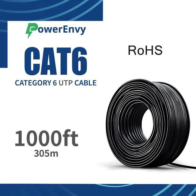High-Speed Cat6 Ethernet Cable 1000ft Bulk UTPPower your network with this Cat6 Ethernet Cable, designed for high-speed data transmission in both residential and commercial environments. Constructed with 23AWG copper-clad aluminum (CCA) and four twisted pairs, it minimizes crosstalk and interference for reliable 10Gbps connectivity at 550MHz bandwidth. Whether you're wiring an office, home, or event space, this cable delivers the stability and speed modern networks demand. ^^ 1000ft Custom-Length LAN Cable Cut to Fit Your ProjectEnjoy maximum flexibility with this 1000ft bulk network cable, perfect for custom installations. Cut it to any length to fit your specific projectno more wasted cable or messy splices.