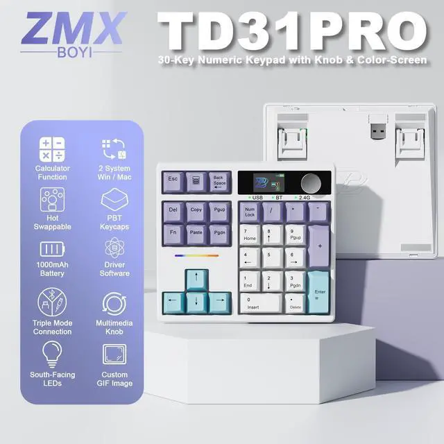 TD31PRO MUILIFUNCTIONAL PROGRAMMABLE NUMPAD: Looking for a keyboard that only needs a few extra keys for programmable commands or other functions? This TD31Pro numpad keyboard features 30-key PCB design with enough space and processing power to handle your most demanding tasks. Full keys programmable, allows you to customize each key functions, macros and lighting effects to your liking. Perfect for professionals looking to streamline their workflow and enhancing productivity ^^