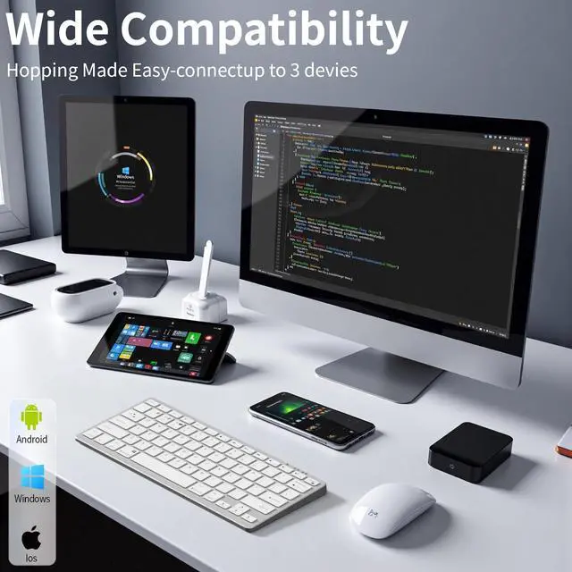 Effortless Compatibility: This wireless Bluetooth keyboard lets you easily multitask, pairing seamlessly with up to 3 Bluetooth-enabled devices (laptops, smartphones, tablets, or smart TVs) within a 10-meter range, providing smooth and reliable performance on all devices