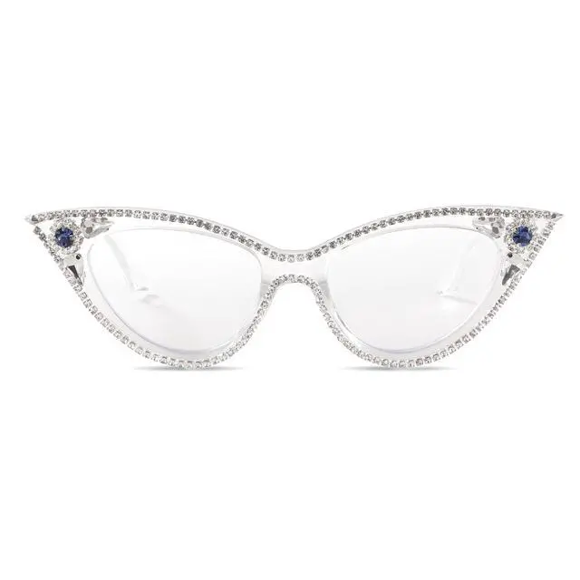 Stylish Diamond Cat Eye Glasses Design: These FEISEDY vintage cat glasses instantly stand out in the crowd, with hand-set diamond frames let you shine anywhere. All details ensure a comfortable fit. This cat eye frame is eye-catching and flattering on many face shapes. ^^