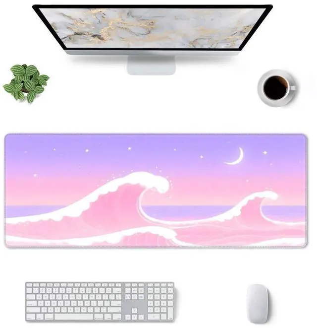 CANFLASHION Pink Waves Large Desk Mat - 31.5"x11.8" Non-Slip Waterproof Computer Mouse Pad,Washable Fabric Surface with Rubber Base for Office & Home Use,Extended Keyboard Mat(300x800x3mm)