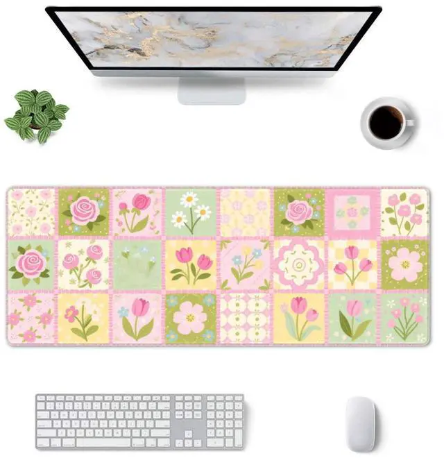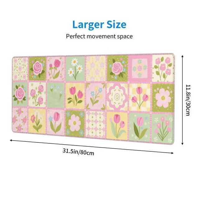CANFLASHION Floral Patchwork Large Desk Mat - 31.5"x11.8" Non-Slip Waterproof Computer Mouse Pad,Washable Fabric Surface with Rubber Base for Office & Home Use,Extended Keyboard Mat(300x800x3mm)