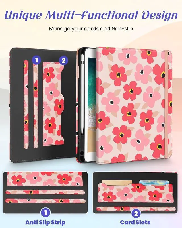 Multi-Functional Design: This for iPad cover 5th generation case/for Apple for iPad Air 1st generation case/for iPad Pro cover 9.7 inch case features an elasticized cord strap, which ensures that your tablet closes securely, provides slip or drop protection. It also has two card slots designed to hold your bank cards business cards and other cards