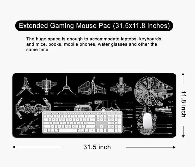 XL Mouse PadLarge gaming mouse pad measures 31.5 x 11.8 x 0.12 inch. Large enough to hold your laptop, keyboard, and other desktop items, with plenty of room for your mouse movement. ^^ EXcellent PerformanceThe surface of the expand mouse pad for desk is made of slender high-density fabric, which is optimized for fast movement while maintaining excellent speed and control during work or gaming, any type of mouse can be easily used on it. ^^ High Quality PrintingLong mouse pad adopts advanced printing technology, the image is clear, beautiful, bright color, Compare with pictures the color error is about 0.5 %~1%.