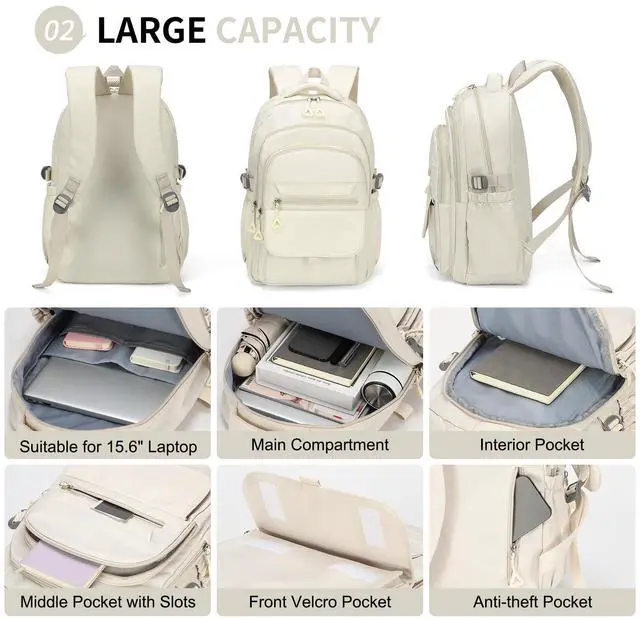 Additionally, a hidden anti-theft pocket on the back panel offers a safe place for valuables like your phone or wallet ^^ -Durable and Water-Resistant- --Built from strong, water-resistant polyester and smooth zippers, this backpack protects books, electronics, and essentials from light rain, making it reliable for work, leisure day, summer or winter vacation, and commuting ^^ -Versatile Occasions- --Optimal for college, work, shopping, and short trips, this backpack complements any outfit with a versatile and modern design. Suitable for young women and men, its the everyday choice for both style and functionality