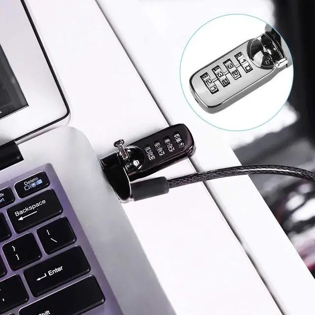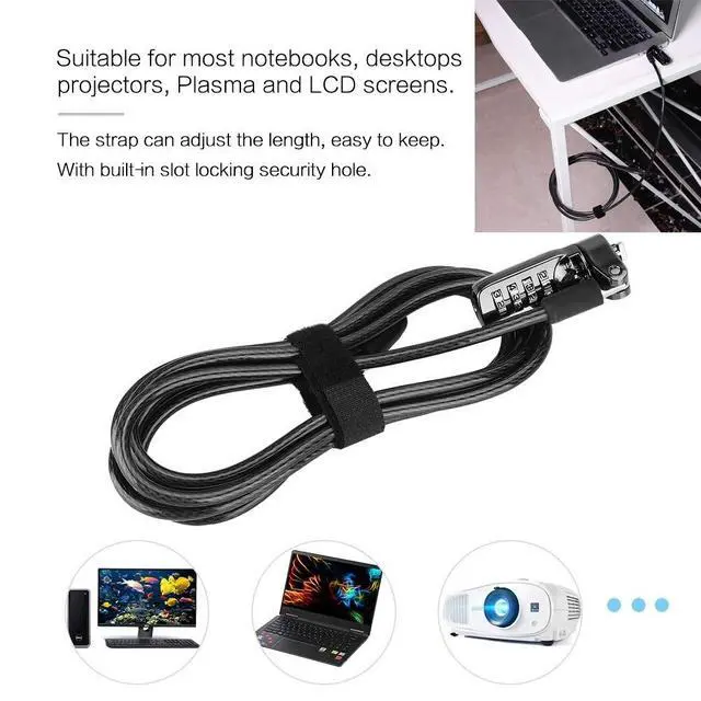 ^^ THEFT DETERRENT: This keyless Lock with 4 dial combination lock. The lock offers 10, 000 different combination codes that can be selected by the user. easily, and easy to take. your electronic device in public places. ^^ MOST COMPUTER IS COMPATIBLE WITH THIS LAPTOP LOCK: This laptop lock suitable for most notebooks, desktops, projectors, Plasma and LCD screens. Attaches to laptop via the Security Slot found in 99% of computers.
