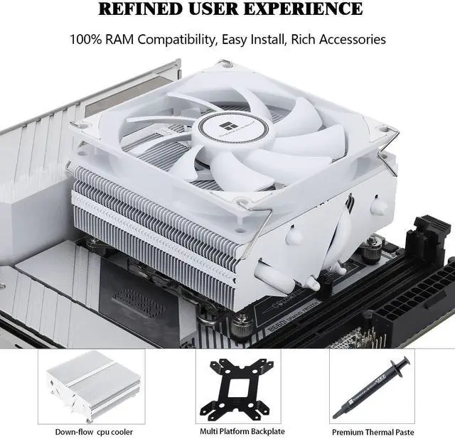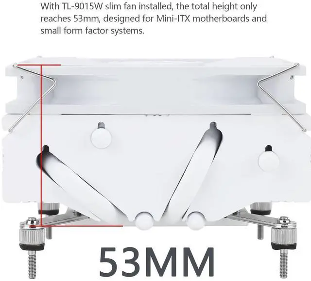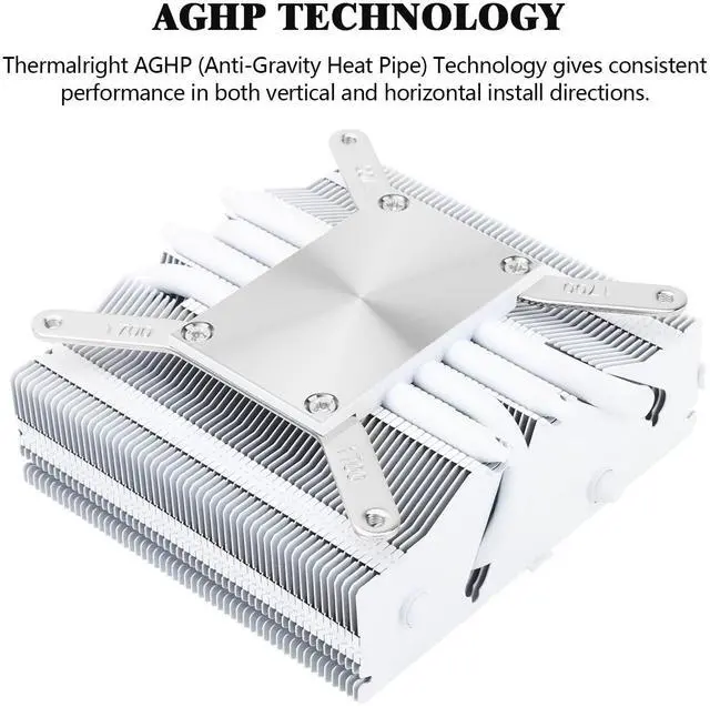 AGHP technique46mm heat pipes apply AGHP 3 generations technique, Solve the Inverse gravity effect caused by vertical / horizontal orientation, the cooling effect of the cpu cooler is also doubled by the process of secondary welding of heat pipes and fins. ^^ 53mm HeightThe AXP90 X53 white low profile cooler, combined with a 92mm PWM fan for automatic temperature control and ultra-quiet operation, and a total cooler height of just 53mm, makes it ideal for HTPC, ITX and small models with a small CPU cooler without any memory limitation worries. ^^ cpu cooler specificationscpu cooling