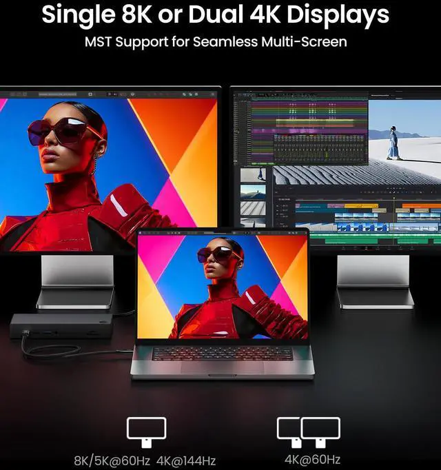 (Note: Both the cable and connected devices must support 40Gbps for optimal transfer speeds) ^^ 8K@60Hz HDR Stunning VisualPerfect for 8K RAW video workflows on MacBook M4. Supports single 8K@60Hz, 5K@60Hz, or 4K@144Hz, as well as dual 4K@60Hz displays with HDR for studio-grade color accuracy.