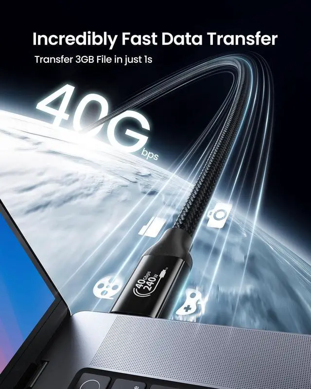 Blazing 40Gbps Data SyncMove 100GB files in 30 sec, 4x faster than USB 3.2 cable. Chain multiple devices via docks, seamless sharing file and high-performance device connections.