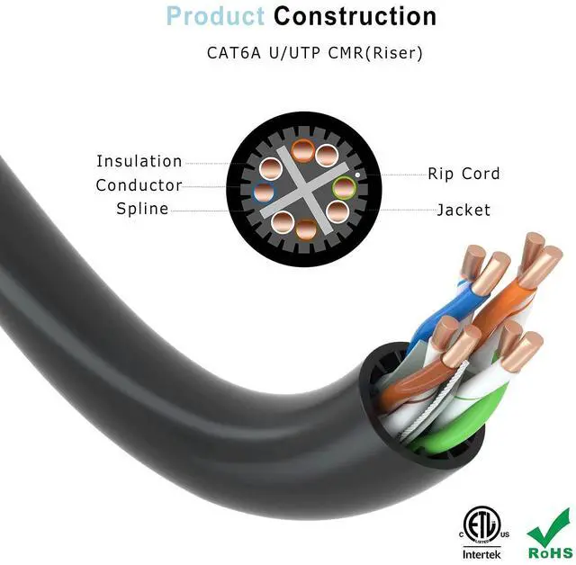 Preserves more reliable signal transmission along with better conductivity. ^^ INDOOR USE. The Cat6A cmr cable is for indoor installation at riser spaces. The flame retardant jackets help reduce the spread of flame between floors, which is safe for use. ^^ AVAILABLE IN WOODEN SPOOL. Our Cat6a cable pulls easily off wooden spool, with sequential length markers to keep track of length used. ^^ CERTIFIED &TRUSTWORTHY. All celertec cables are designed and tested to meet or exceed ANSI TIA/EIA 568-C. 2 standards, ETL listed as well as RoHS Compliant.