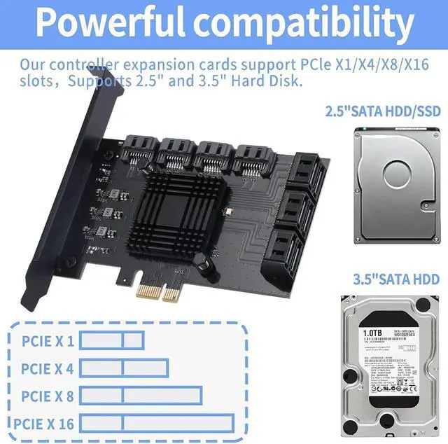 ^^ EXTENSIVE COMPATIBILITY Fully COMPATIBLE with X1/ 4X/ 8X/ 16X Slots on the mainboard and with compatible with both 2.5 SATA HDD/ SSD and 3.5 SATA HDD. Compatible with LINUX, Windows XP, and newer, MAC OS, and others. ^^