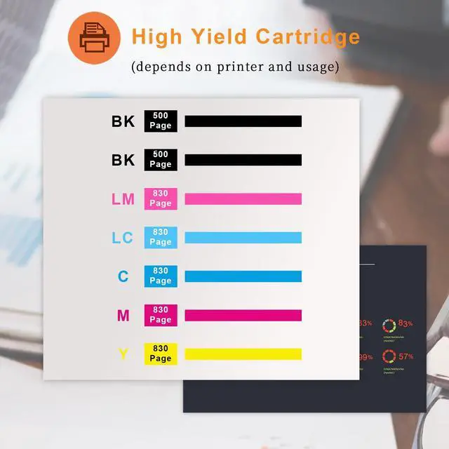 Page Yield: Up to 500 pages per 312XL Black ink cartridge at 5% coverage (Letter A4), up to 830 pages per 312XL Cyan/Magenta/Yellow/Light Cyan/Light Magenta ink cartridge at 5% coverage (Letter A4) ^^