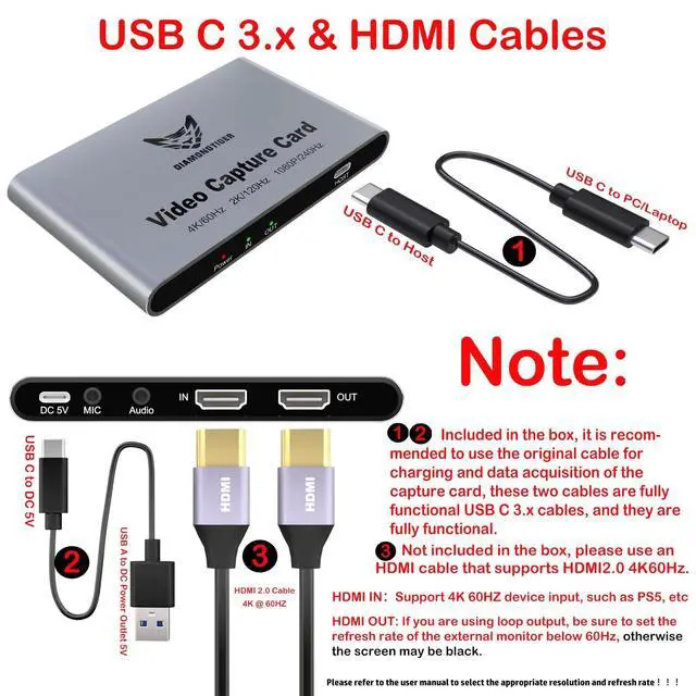 ^^ Note: To ensure the resolution of video capture, please be sure to use the original USB3. x cable. This capture card is a high-resolution, high-quality capture card, so the USB 2.0 cable is not suitable for the high data transmission requirements of this product.