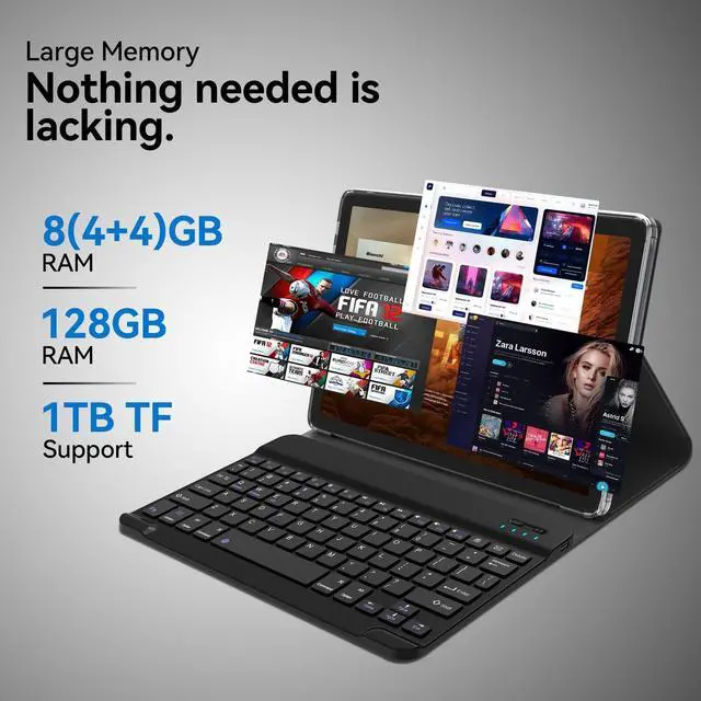 Provide Better Viewing Experience: 2025 Tablet 10.1 inch has a wider HD screen, IPS HD screen provides better light and shadow effect for the tablet, 1280x800 resolution and Dual speakers to enjoy a clearer display. Tablet comes with reading mode can effectively protect your eyes, more suitable for long time watching and reading. ^^ Stay Well Connected All The Time 2 in 1 tablet support IEEE 802.11 a/b/g/n/ac, Dual band Wifi tablet can easily connect with 5Ghz or 2.4G hz Wifi. You don't have to worry about not being able to connect to wifi in public or at home because 2.4G hz wifi is bursting at the seams, it's better for more scenarios, and the strong reception signal keeps you well connected all the time. ^^ Upgraded Long-Lasting Battery Life Tablet Android with 7000mAh long continuous upgrade large battery, with USB-C charging port, giving users longer entertainment and work time and shorter charging time, 10 inch tablet with parental control function can better plan the use of children's time, not excessive play tablet. ^^ Best Value with multiple accessories Tablet with keyboard (Bluetooth), wireless mouse, foldable case, stylus, charger and USB-C cable.