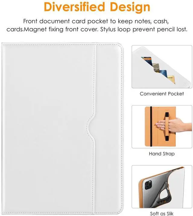 Model Number: A2764/A2437/A2766/A2436/A2378/A2461/A2379/A2462/A2229/A2069/A2232/A2233/A1876/A2014/A1895/A1983. Not compatible with any other iPad model. ^^ Built-in Pencil Holder - Securely carries and protects your pencil wherever you go. A hole has been designed at the back of the pencil holder that you can easily push pencil out without taking off your iPad Pro 12.9 case. ^^ Magnetic Smart Cover - Support Auto Wake/Sleep, built-in leather hand strap(one-handed operation) and external elastic band enhances magnetic closure (reduces battery drain). ^^ Multi Function - Multiple horizontal bracket angles for comfortable watching movie or typing. Features front document card pocket to keep notes, cash, cards.
