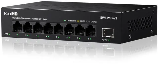 2.5G Super-FastThis 2.5 gigabit switch features 8x 2.5G RJ45 ports and 1x 10G SFP port, providing higher-speed connectivity for your devices and allowing you to easily upgrade your network to support the latest 2.5G ethernet standard.
