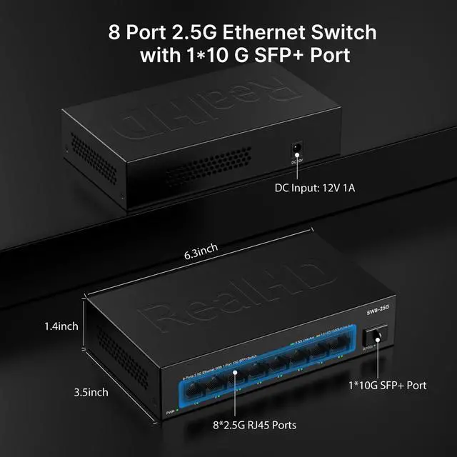 NOTE: To get 2.5GB high network speed please use CAT6 or higher level pure copper ethernet cable. Please make sure other network products come with 2.5GB network cards to get whole network 2.5GB speed, otherwise the network speed will be determined by the lowest speed network device. ^^ Sturdy and QuietCompact & sturdy metal housing with 4KV lightning protection design make this network switch safe to use in various environments. The fan-less design quietly integrates with your office environment and featured good heat dissipation, safe to use in temperatures from -20 to 50. ^^ Plug and PlayEasy setup with no software installation or configuration needed for this ethernet switch. ^^ ApplicationThe muti-gigabit switch can work with a wide range of ethernet devices, including 4K Video, Laptops with 2.5G Ethernet Adapter, Wifi 6 Router, Wifi 6 AP, 2.5G Gaming PC, 2.5G NAS computers. To achieve better performance, it's better to upgrade all your devices to 2.5 g to get a better experience. ^^ US Local Tech SupportChicago-based seller, tech support hour 9 am-5 pm CST. Please contact the seller for tech support. This 5 Port Ethernet Switch 2.5G is worth your while!