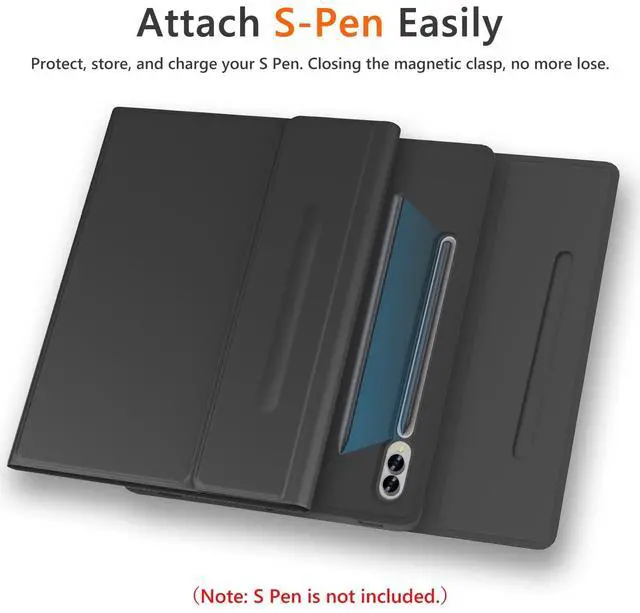 Galaxy Tab S9 Plus: After this keyboard is connected to your galaxy tab S9 fe+ keyboard via Bluetooth once,, it will automatically connect after subsequent use, turning your tablet into a laptop in seconds! It can also be used as a separate keyboard that connects to other devices (Windows, IOS, Android supported) via Bluetooth. The scissor-style keys on the keyboard are quiet and smooth, providing you with a comfortable typing experience. ^^ Galaxy Tab S10+/S9+ Case with Built-in S Pen Slot Galaxy Tab S 10 plus/S9 plus case with keyboard comes with a specially designed S pen holder, cap and adapter slot to store your S pen, easily carry stylus and get it whenever you need it.