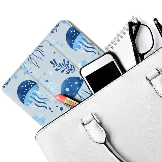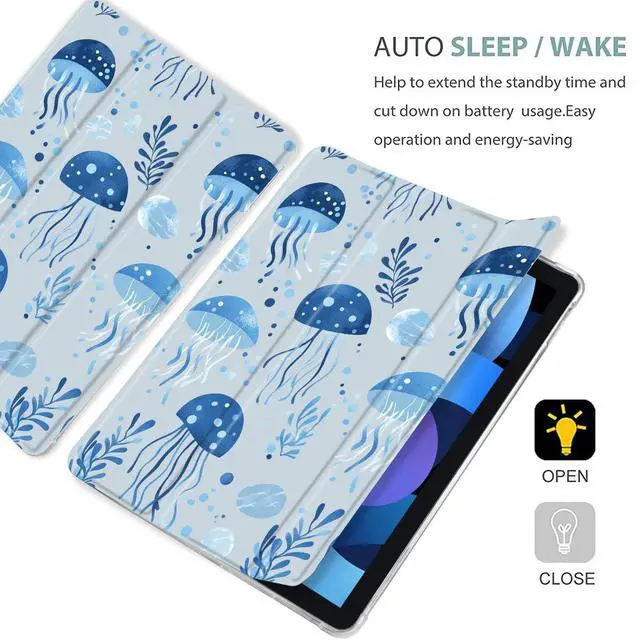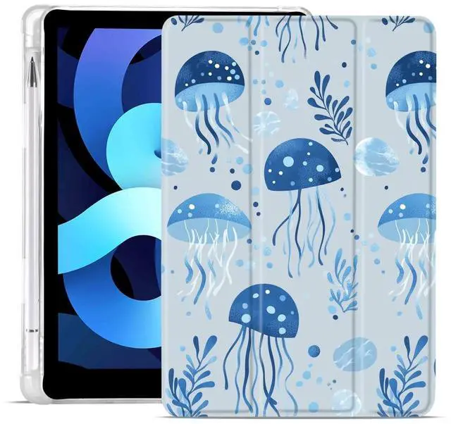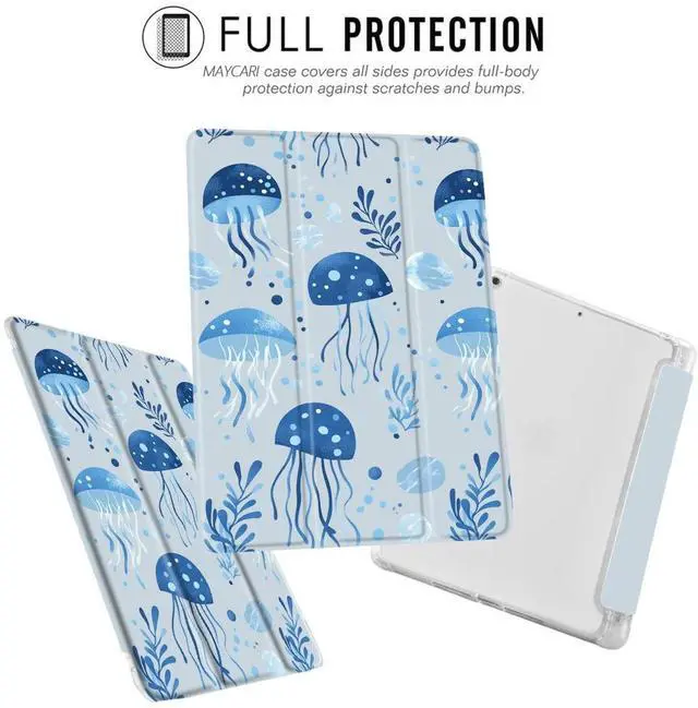 MAYCARI Marine Ocean Sea Case for iPad A16 11 inch 2025 with Pencil Holder, Original Pattern iPad 10th Generation Soft TPU Back Protective Cover Shell, Auto Sleep/Wake Slim Shell - Blue Jellyfishes