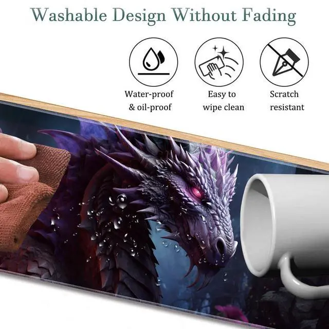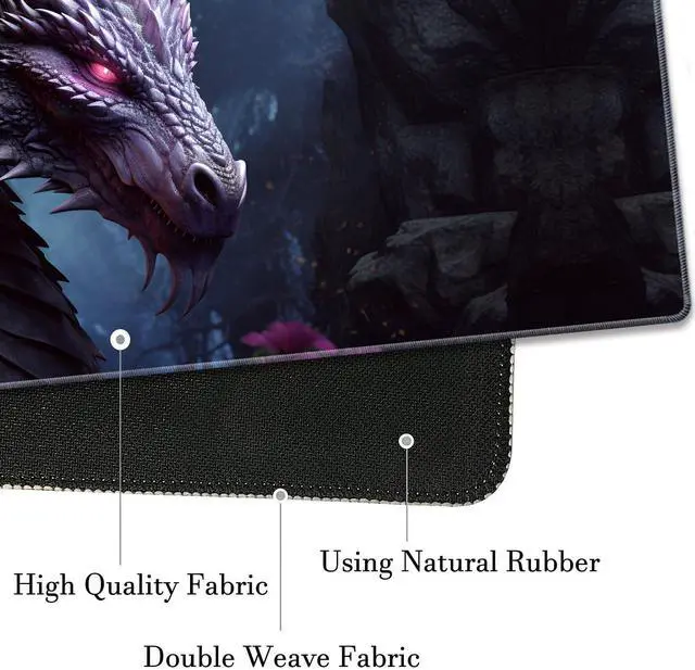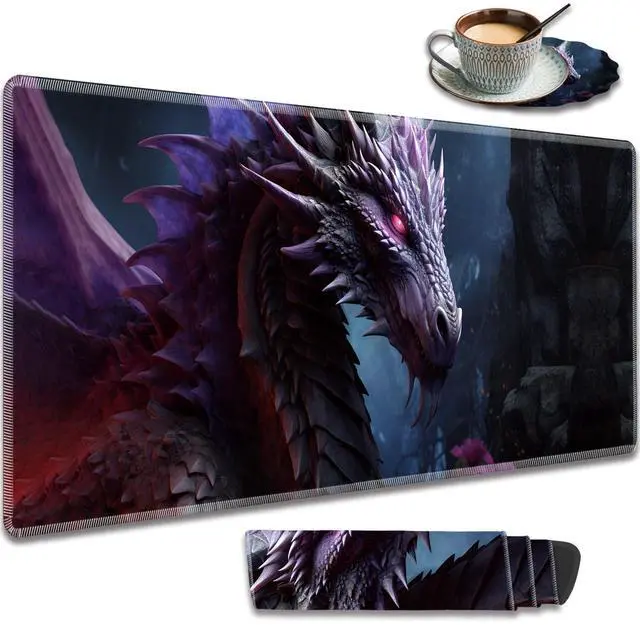 Extended Gaming Mouse Pad 31.5" x 11.8", with Edge Stitching, Non-Slip Rubber Base Keyboard Pad, Suitable for Work, Game, Office, Home and Coasters, Cool Dark Dragon