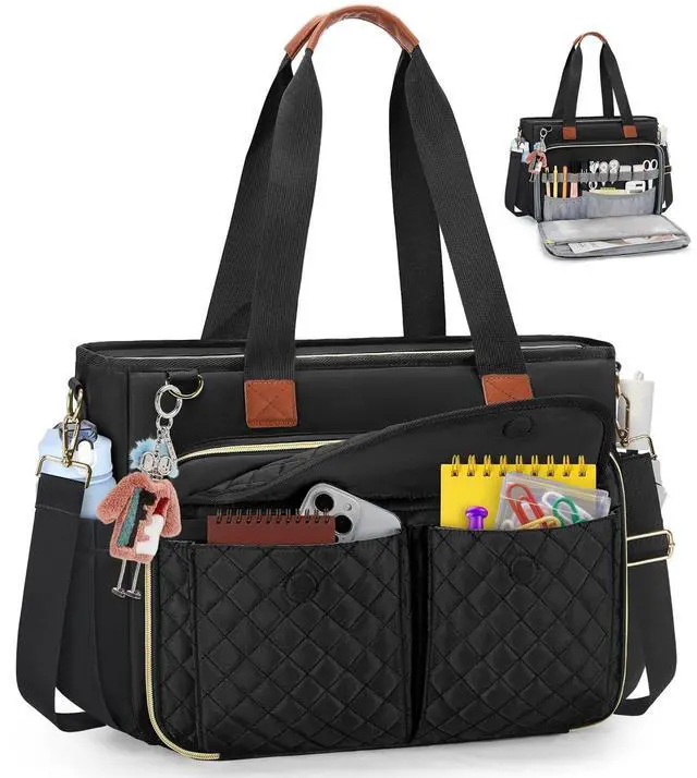 shoulder strap: 30''-55'', Double layers of the front organized compartment aim to store scattered items. The front zip compartment features 11 elastic loops of different lengths, perfectly to store markers, red pens, calculators, mini staplers, rulers, sticky notes, snacks, and morekeeping your core teaching tools handy while helping you care for your class and manage your instruction. ^^ SUITABLE FOR THE MAJORITY OF PEOPLE -Designed for work, travel, and daily errands, this multi-pocket tote bag makes an ideal bag for professionals, career women, nurses, teachers, busy moms, The laptop bag for women also provides multiple ways of carrying, it can serve as a shoulder bag, hand bag and crossbody bag, office bag.