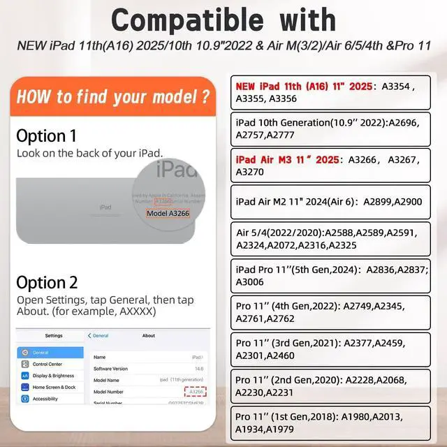 Compatible with: Compatible with New iPad 11th (A16) 11 in 2025 (Model