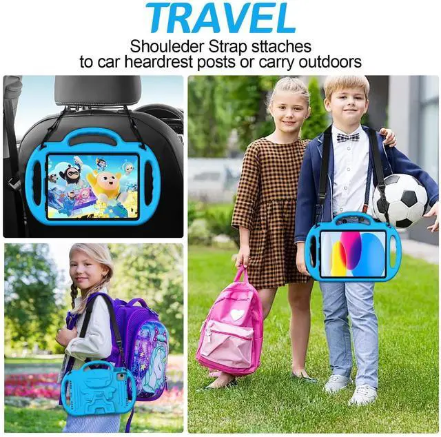 ^^ Shoulder Strap: Comes with a shoulder strap for easy use on the go or in the car. Good helper for traveling or picnic. No more fear of children's hands slipping and dropping the tablet. Best Kids Choice. ^^