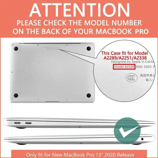 ^^ WARNING: Not 11 or 12 inch Case. This case NOT compatible with the Macbook Pro 13 A1706 A1989 A2159 A1708 Model and Old MacBook Pro 13 inch with retina model: A1502/A1425. Please kindly Check Your MacBook Model "Axxxx" on the bottom before Purchase. Make sure youre ordering the correct size "A2338", "A2251" or "A2289"MacBook Pro 13 Case. It will NOT fit your MacBook if you chose the wrong size. ^^ Made of high quality material, Ultra slim but Sturdy and Durable and light-weight( ( 8.2 oz or 230 g) with soft touch beige color matte surface. No cut out design and apple logo NOT see through that also make your MacBook Pro out of the ordinary while keep the original design. ^^ Two pieces and Snap on design, easy to clip on and take off, let you open/close your MacBook freely all the time. Thunderbolt port access, also access to all ports without removing the case. Bottom cover with vent slots to heat dissipation and raised rubberized feet to keep your laptop firmly on the place.
