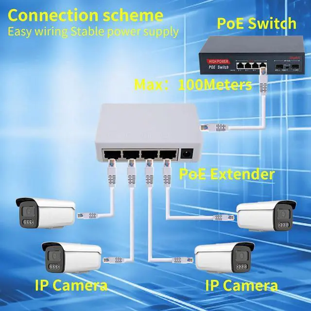 Note: The PoE Extender does not have its own power supply and needs to be powered by an PoE switch. ^^ [High Speed & Stable Data Transmission] Our Gigabit POE extender can reach a maximum speed of 1000Mbps, ensuring fast and stable data transmission, reducing latency and data transmission loss. ^^ 100m signal extensionThe poe passthrough switch can extend the installation range of Ethernet and PoE devices by 100 meters (328 feet), effectively extending the data transmission and power supply range, ensuring full coverage of network signals, and eliminating network coverage problems caused by distance factors. ^^ Plug and Play, Easy InstallationNo software or configuration needed! This POE extender outdoor can automatically detect end devices and provide power and networking. Simply connect the POE extender with a single network cable, and its ready to go. The included wall-mount bracket allows for flexible installation on walls or other surfaces. ^^ Wide Compatibility & ApplicationsCompatible with IEEE 802.3 af/at standards, this Outdoor Gigabit PoE extender works seamlessly with IP cameras, IP phones, wireless access points, and other POE devices.