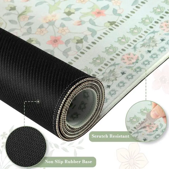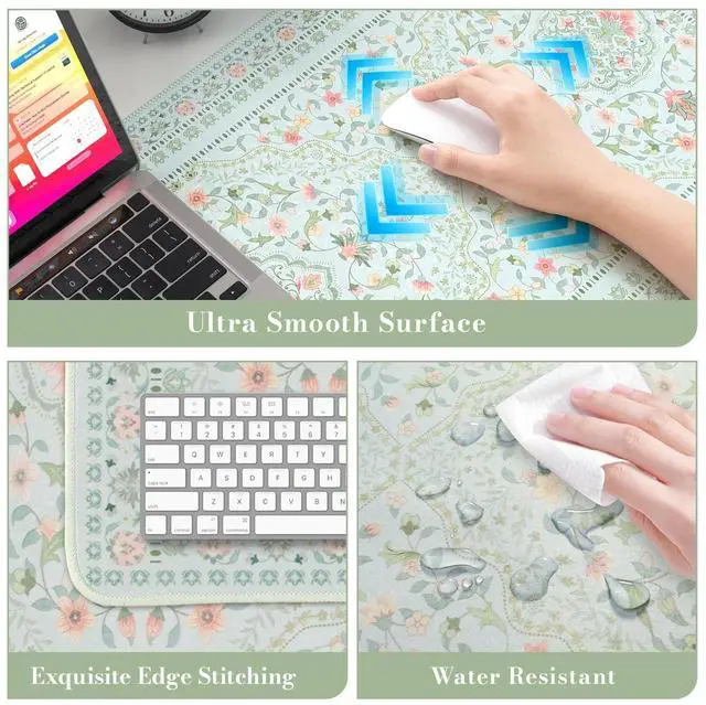 ^^ Stitched Edges: Shield the floral desk mat from wear, deformation, and fraying. Built to withstand years of daily use, the desk blotter mat's reinforced border combats edge curling. No irritation from edges.