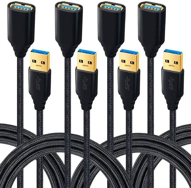 Package included: 4-Pack 6 feet USB extender cables - Black