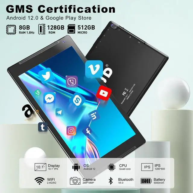 Higher Performance Android 12-- The latest tablet Android 12 Packed with a powerful processor 1.8 ghz, 4+4GB RAM and 128GB ROM on board (MicroSD expandable can up to 512GB) delivering quick app launches, smooth games and videos, and great overall performance. This Android 12 tablet pc is perfect for running a mass of entertainment apps fluently. ^^ Android 12.0 System-- This tablet 10 inch has been updated to android's latest version Android 12 version. Sensitive touch effects make game progress, page switching, and software control more convenient and faster. you can download apps like Tiktok Facebook, Twitter, and Instagram.