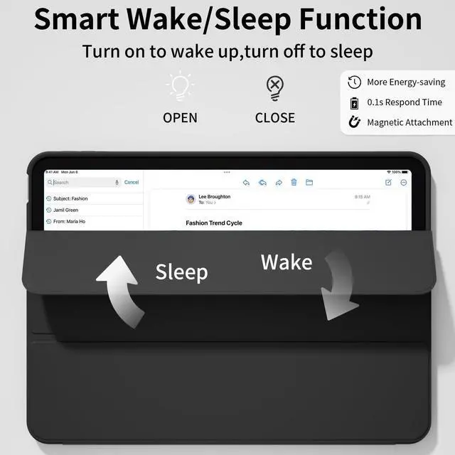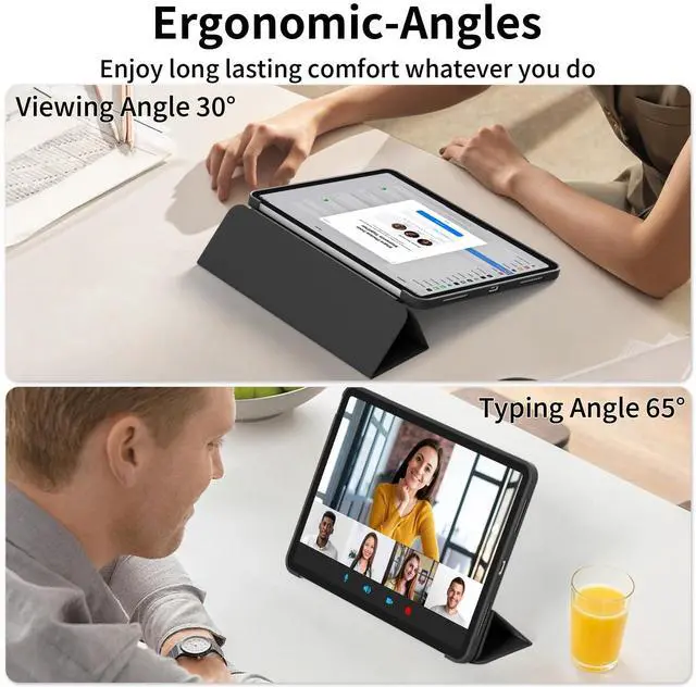 Tri-fold Stand: The magnetic tri-fold cover can be easily folded into a stable stand, supporting 30 or 65 and horizontal and vertical positions, ensuring a comfortable angle for watching your favorite shows or taking notes with Pencil. Avoid joint pain, free your hands, and enjoy other ente