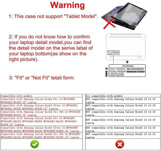 ^^ Warning: NOT compatible with 13.3 inch Samsung Galaxy Book3 360 13.3 NP730QFG Laptop and NOT compatible with 15.6 inch Samsung Galaxy Book3 360 15.6 laptop and NOT compatible with 14 inch Samsung Galaxy Book3 Pro 14