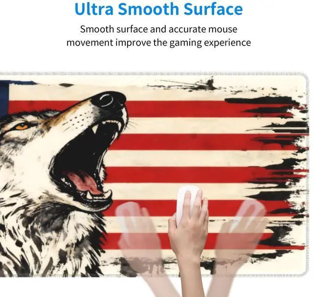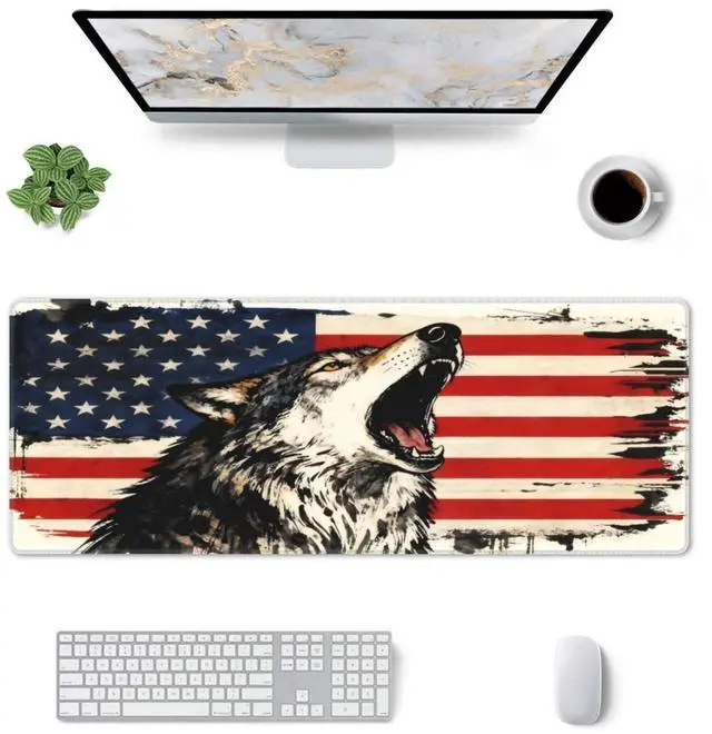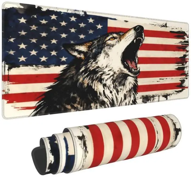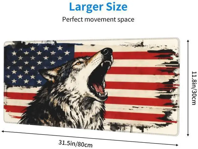 CANFLASHION American Flag Mouse Pad,Office Desk Mat 31.5"11.8",Large Gaming Mouse Pad with Wolf Design, XL Extended Waterproof Desk Pad for Computer with Non-Slip Rubber Base300 * 800 * 3mm