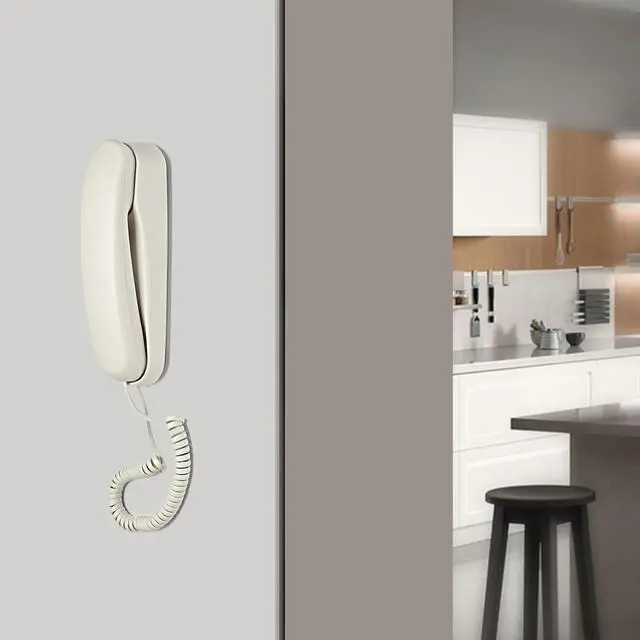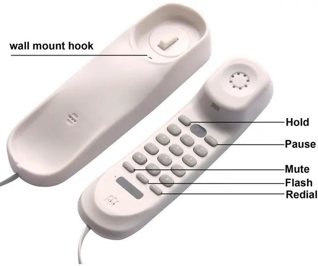 Desk/Wall mountable: You can place the base on a convenient surface or easily mount it on the wall, saving on counter space. A redial feature lets you quickly call the last outgoing number. ^^ This trimline corded phone is especially designed for home or hotel bathroom use. You can also use it in living room, bedroom or kitchen for home and office use.
