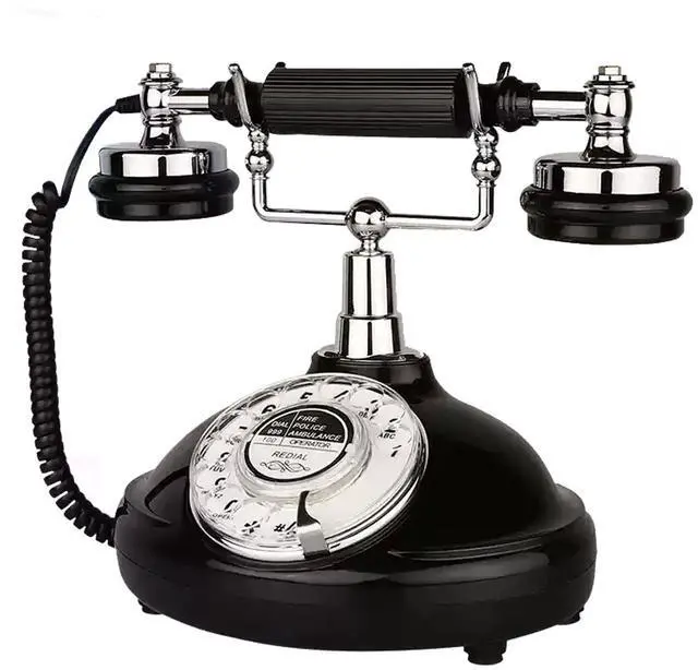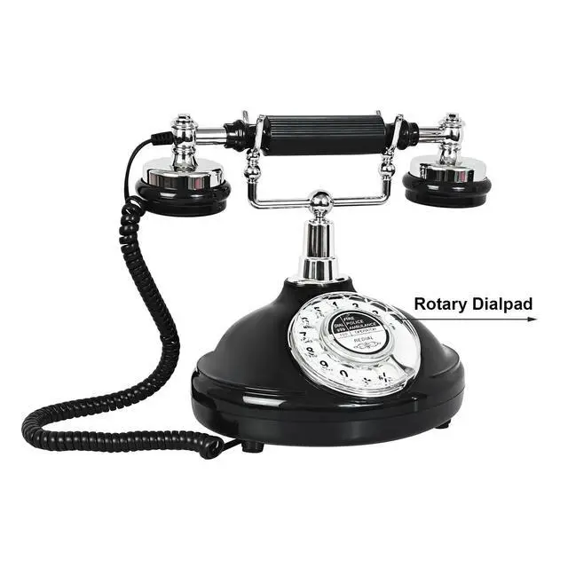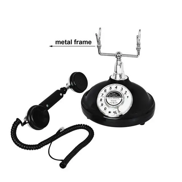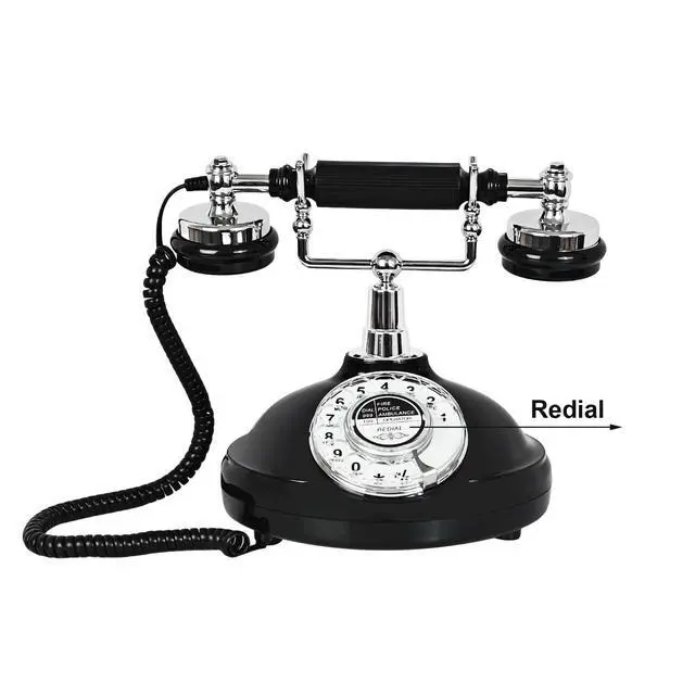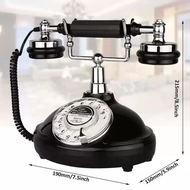 Black Antique Classic Vintage Corded Landline Phone Home School Movie DecorOld Fashion Retro Dial StyleThis is a retro-styled 1930s European-style telephone. The high-quality microphone and speaker in the classical receiver handset assure excellent voice quality. It is ideal for home, office, hotel, shops or other places. It is a pretty real phone that can truly make and answer calls. Not only practical but also can as an ancient decoration. Instruction1. Put the telephone in flat area, keep it stable. 2. Connect the cable correctly according to the manual.