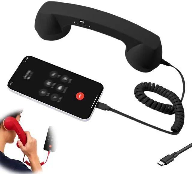 Retro Phone Handset, 2026 New Retro Phone Handset for iPhone, Type-C Retro Telephone Wired Handsets Style Landline Handle Receiver for Cell Mobile Video Conferences, Calls (Black)