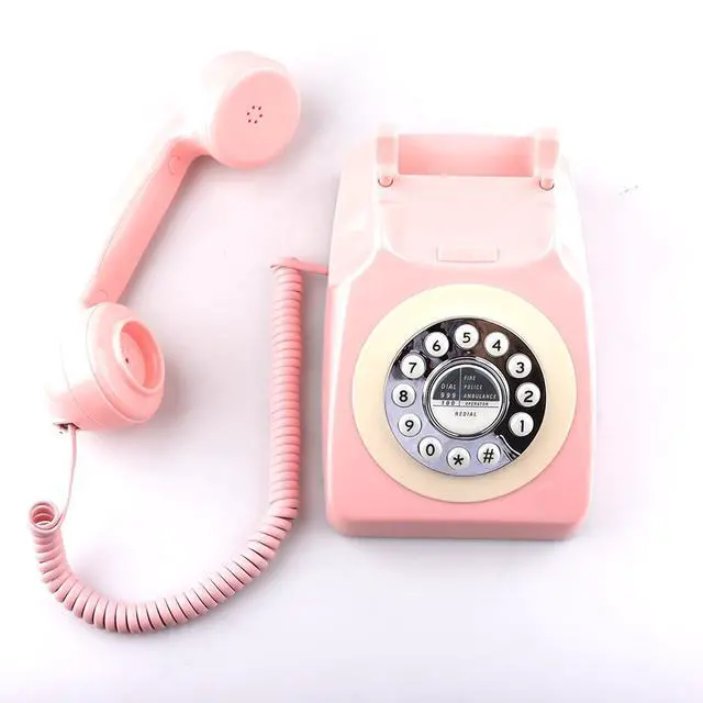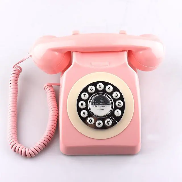 SIXDEFLY Retro Telephone, Classic Landline Telephone Vintage Old Fashioned Corded Telephone with Redial Function,for Home & Office Decor, Pink