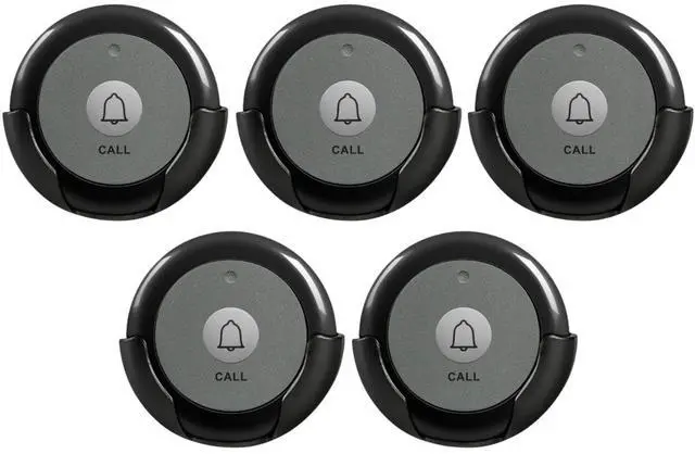^^ PACKAGE CONTENTS: 5 Call Buttons, 5 Batteries (12V 23A), 5 Call Button Mounting Brackets, 5 Lanyard Straps, 5 Double Adhesive Tapes.