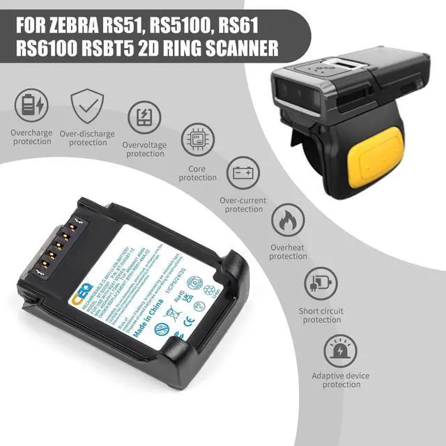 For Zebra RS5100 BatteryCompatible with the Zebra RS51 RS5100 RS61 RS6100 RSBT5 RS61B0 RS61C0 RS51B0 RS51C0 and is the best replacement battery available for Zebra Ring Scanner. ^^ For Zebra Ring Scanner BatteryPart number: BT-000398 BT-000397 BTRY-RS51-7MA-01 BTRY-RS51-4MA-01.