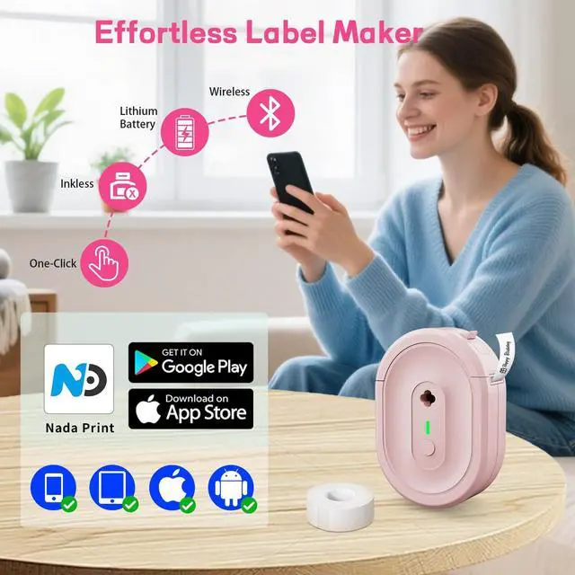 ^^ Bluetooth Label Maker: This wireless mini label maker can pair seamlessly with iOS and Android devices via the NADA Print app. Simply download the app, Connect via Bluetooth in seconds and start printing.